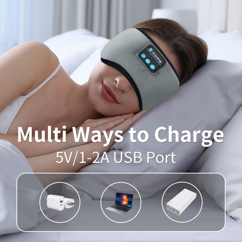 コットン Bluetooth スリープ アイマスク ヘッドバンド ヘッドフォン グレー